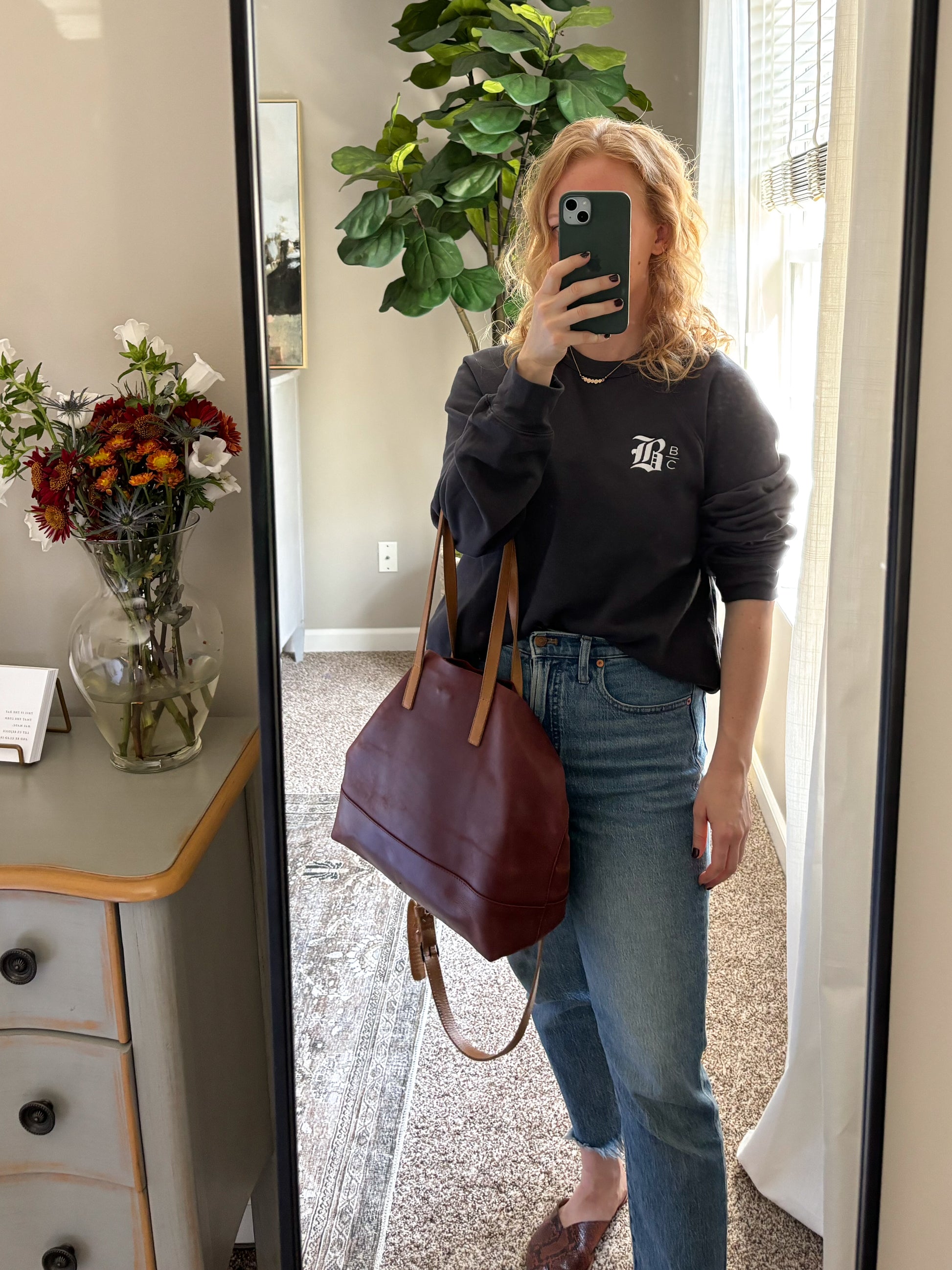 This is a fitted + slim style, so we recommend sizing UP if in between sizes if you don’t want it fitted. Model is 5'2" and wearing a large.